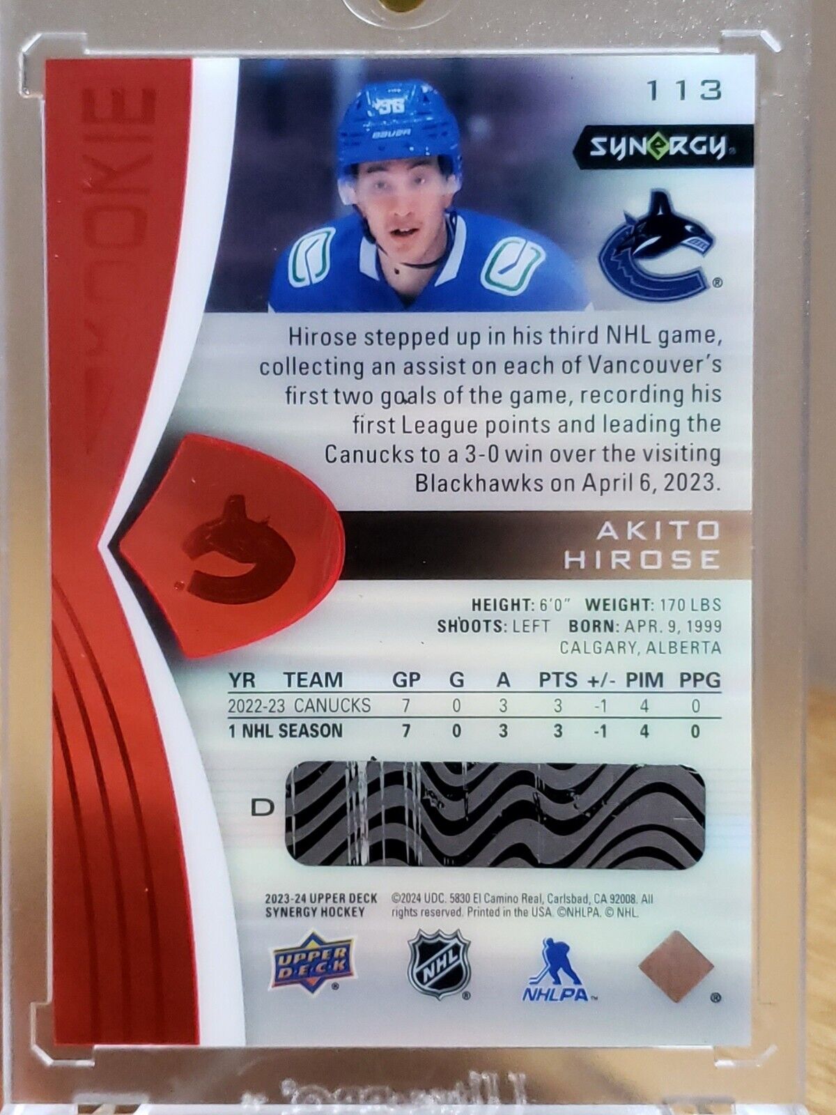 Akito Hirose 2023-24 Upper Deck Synergy Rookie Card Unscratched Bounty #113