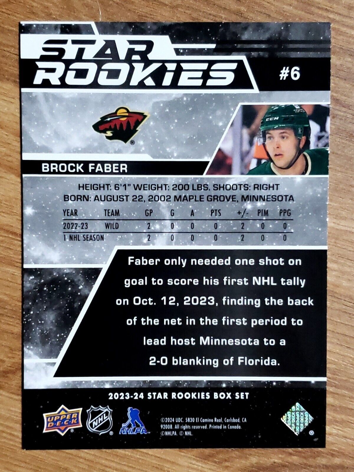 Brock Faber 2023-24 Upper Deck Star Rookie Card #6