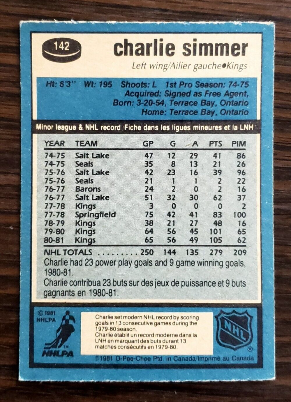 Charlie Simmer 1981-82 O-Pee-Chee OPC #142