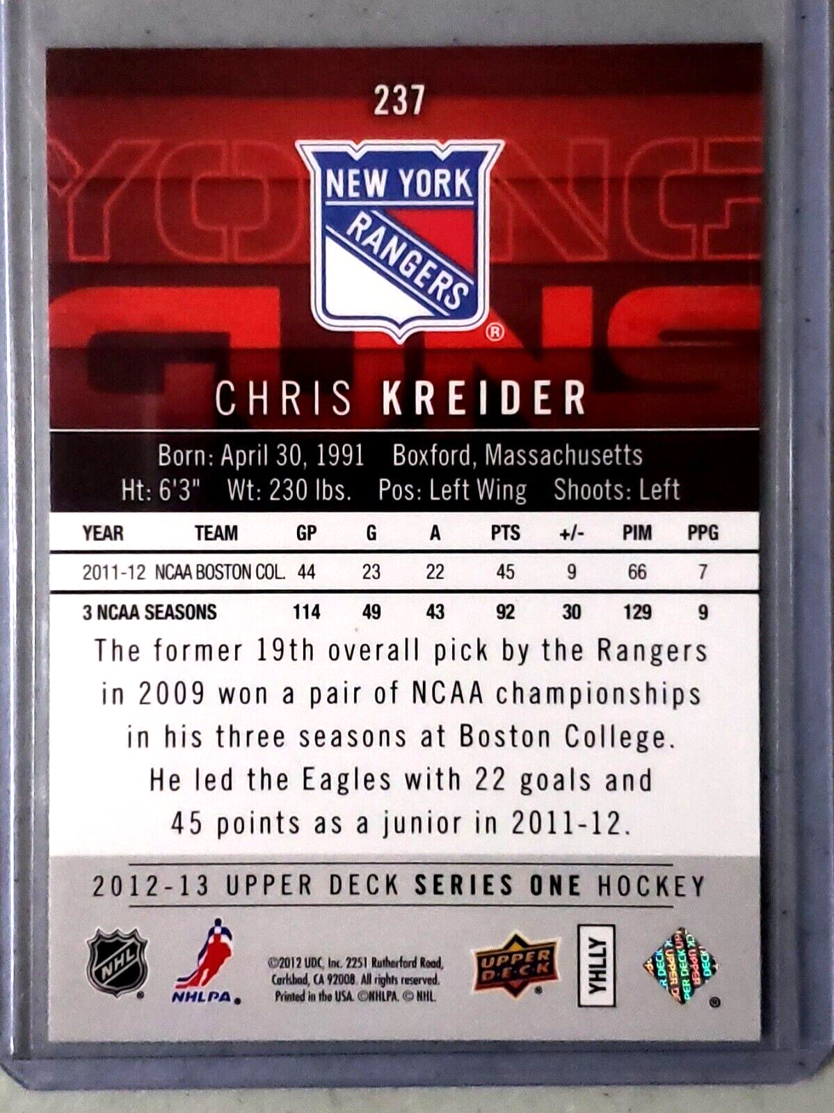 Chris Kreider 2012-13 Upper Deck Young Guns Rookie Card #237