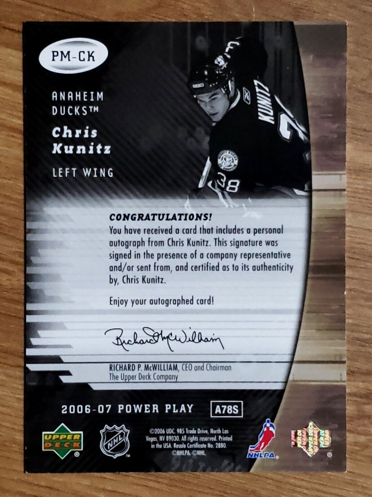 Chris Kunitz 2006-07 Upper Deck Power Play Power Marks Auto #PM-CK