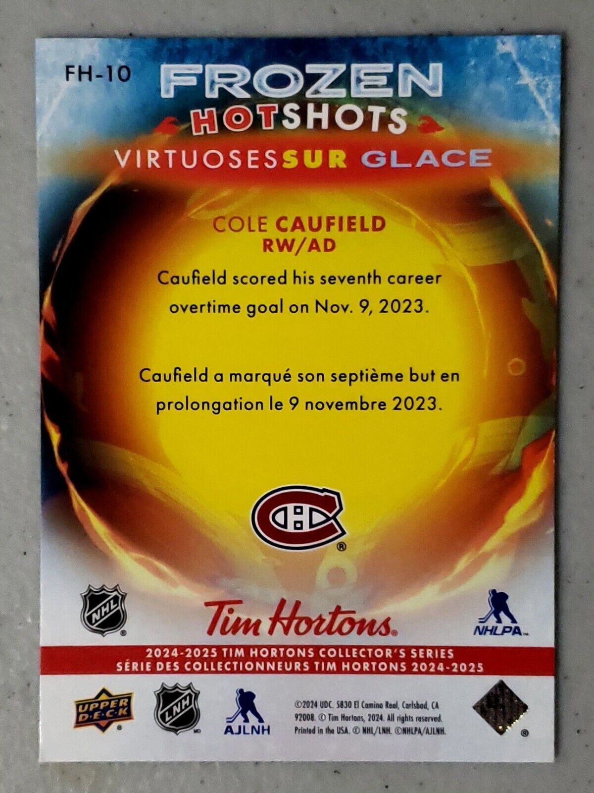 Cole Caufield 2024-25 Upper Deck Tim Hortons Frozen Hotshots Insert #FH-10