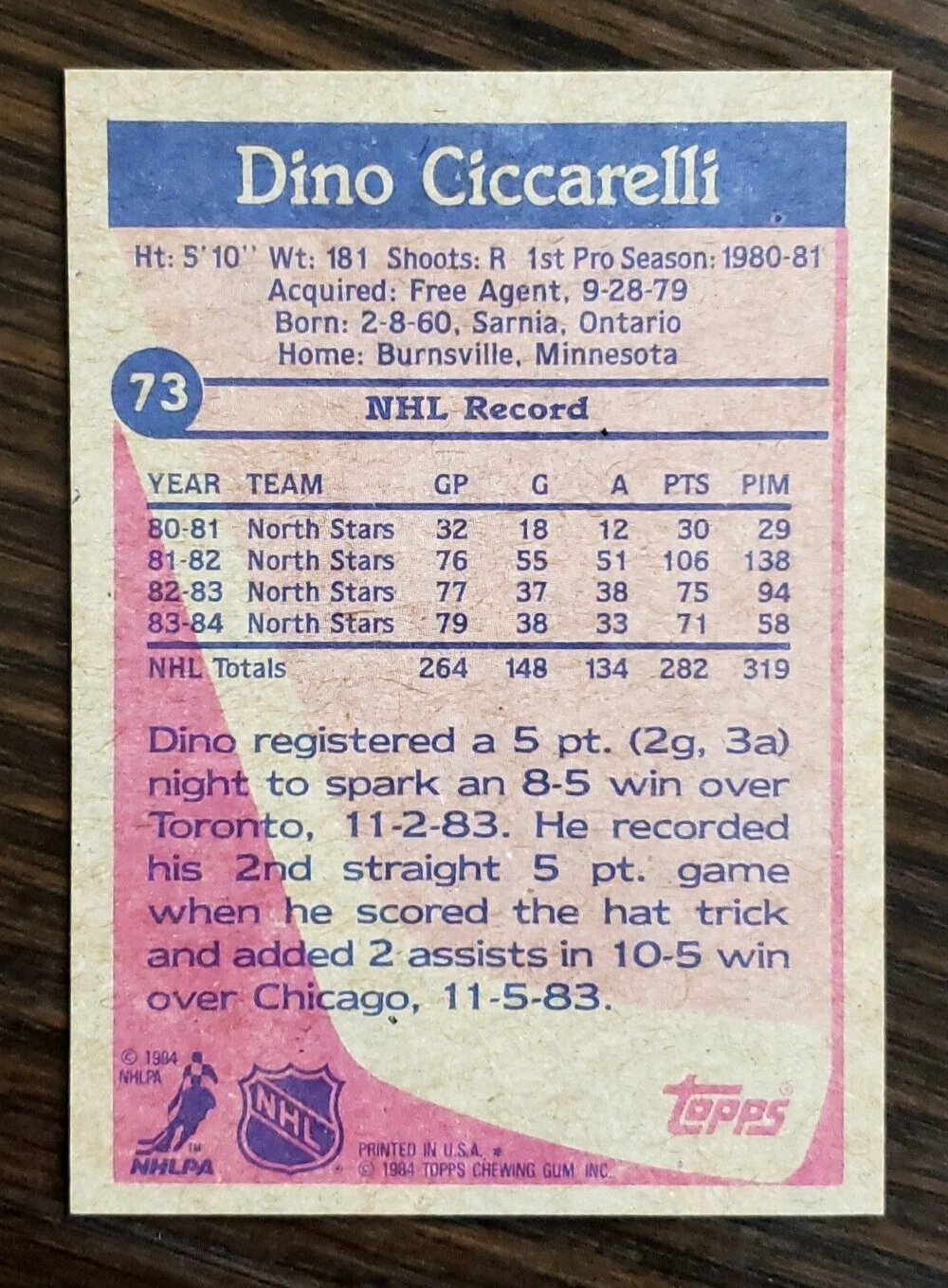 Home→Dino Ciccarelli 1984-85 Topps NM+ #73