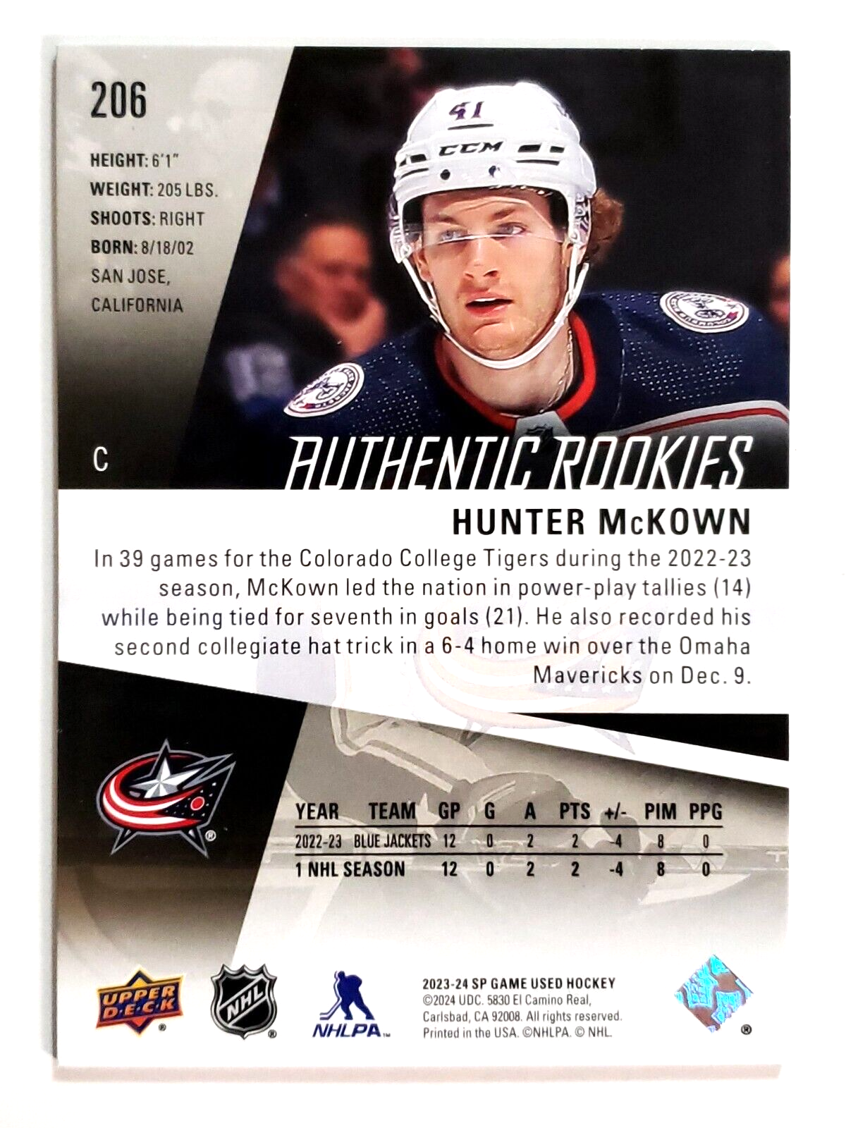 Hunter McKown 2023-24 SP Game Used Gold Authentic Rookies /123 #206