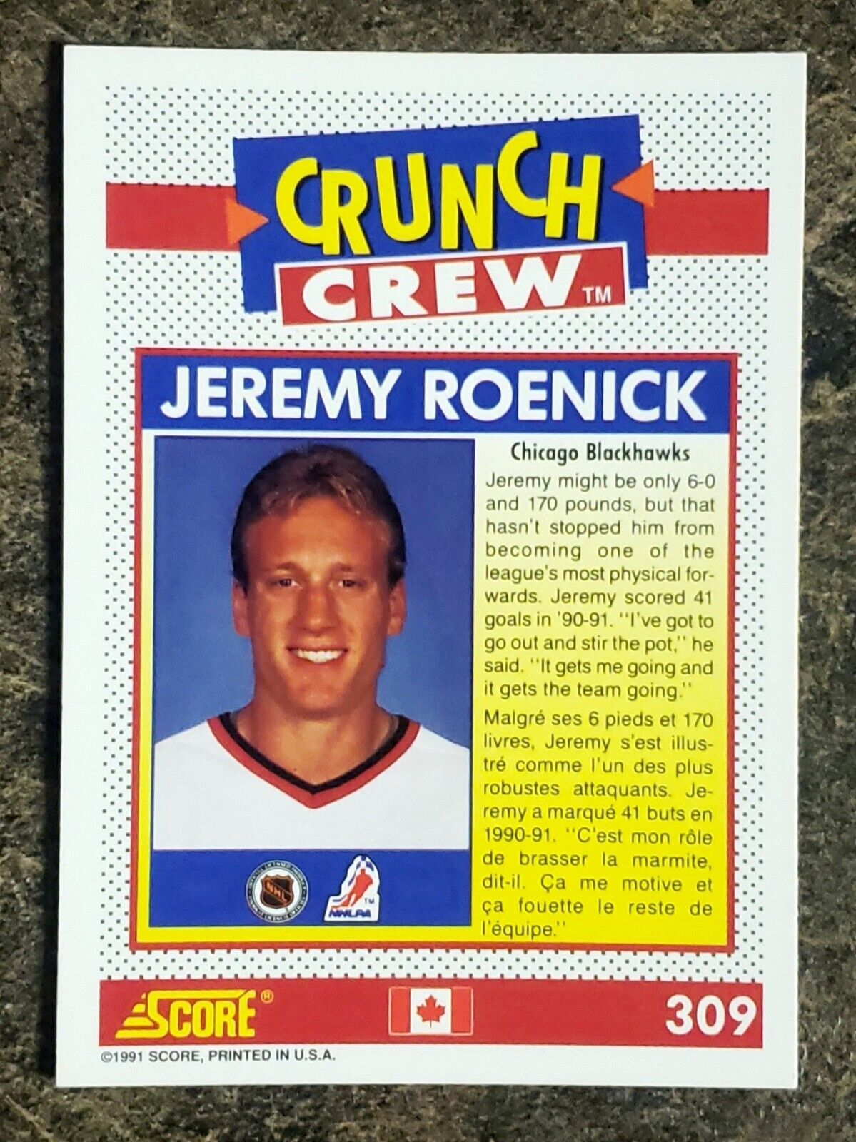 Jeremy Roenick 1991-92 Score Canadian Bilingual Crew Crunch #309