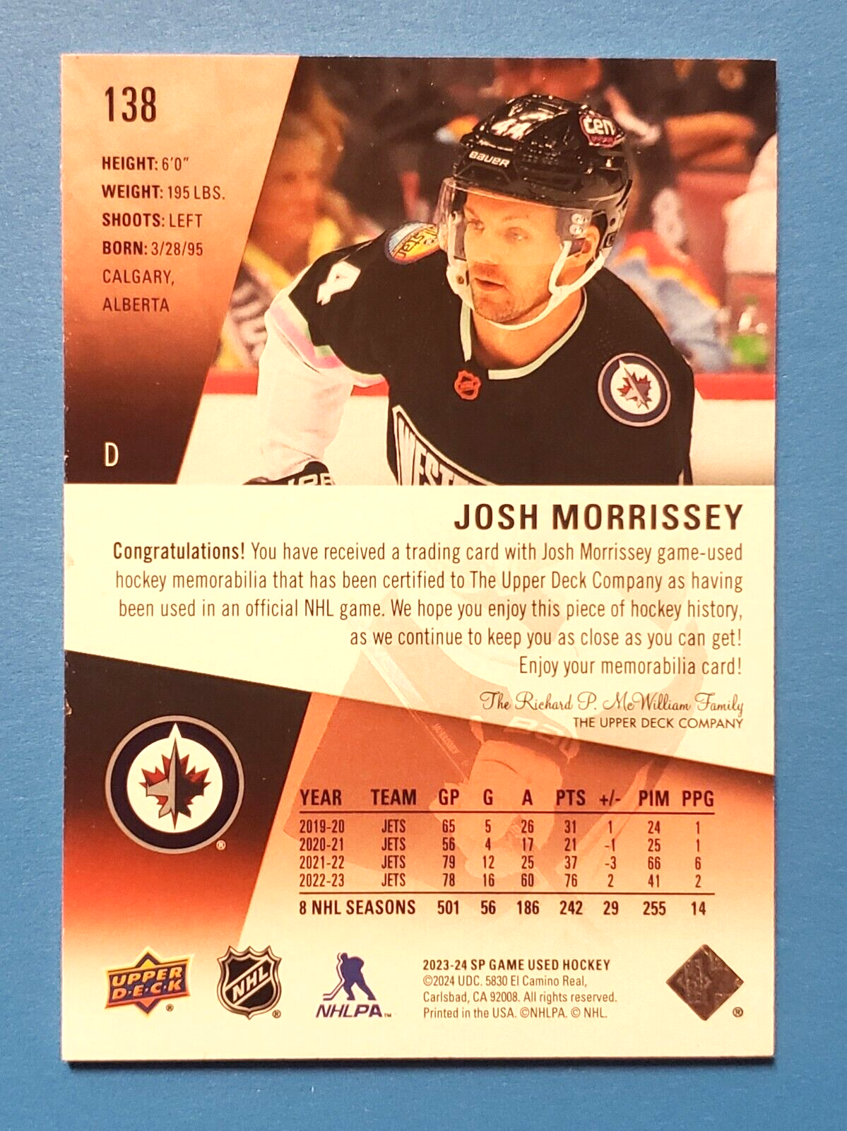 Josh Morrissey 2023-24 SP Game Used Red Jersey #138