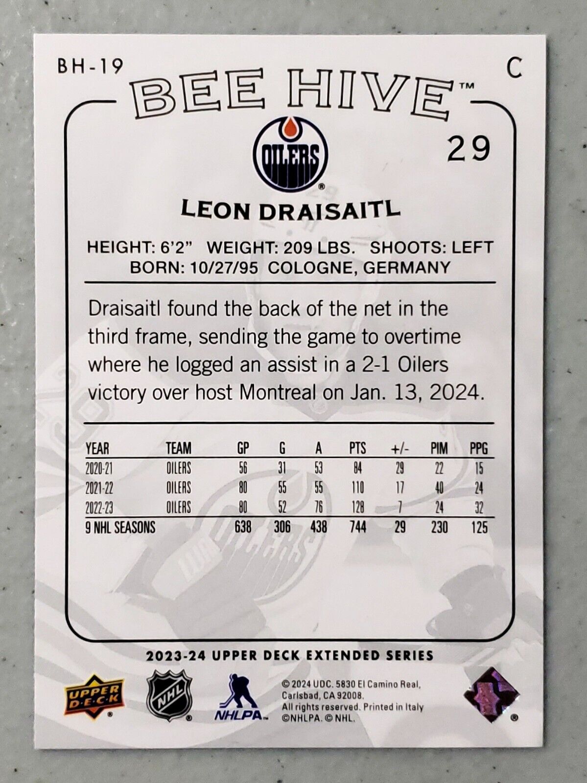 Leon Draisaitl 2023-24 Upper Deck Bee Hive #BH-19