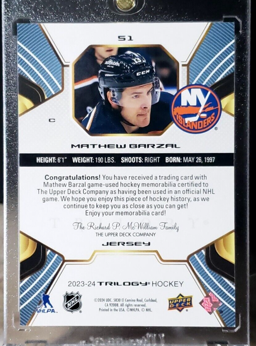 Mathew Barzal 2023-24 Upper Deck Trilogy Orange Foil Jersey #51