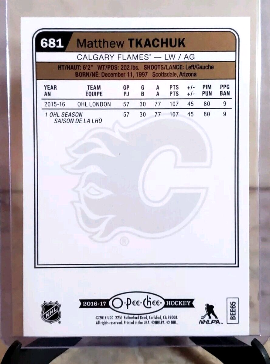 Matthew Tkachuk 2016-17 O-Pee-Chee Update Rainbow Foil Marquee Rookies OPC #681