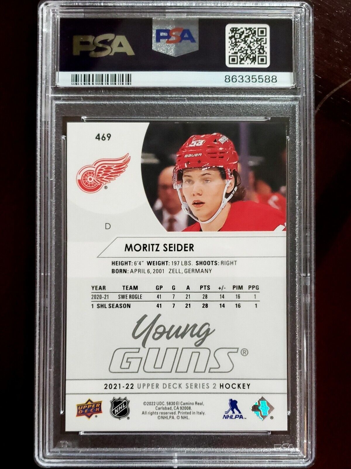 Moritz Seider 2021-22 Upper Deck Young Guns Rookie Card Graded PSA 9 #469 - Image 2