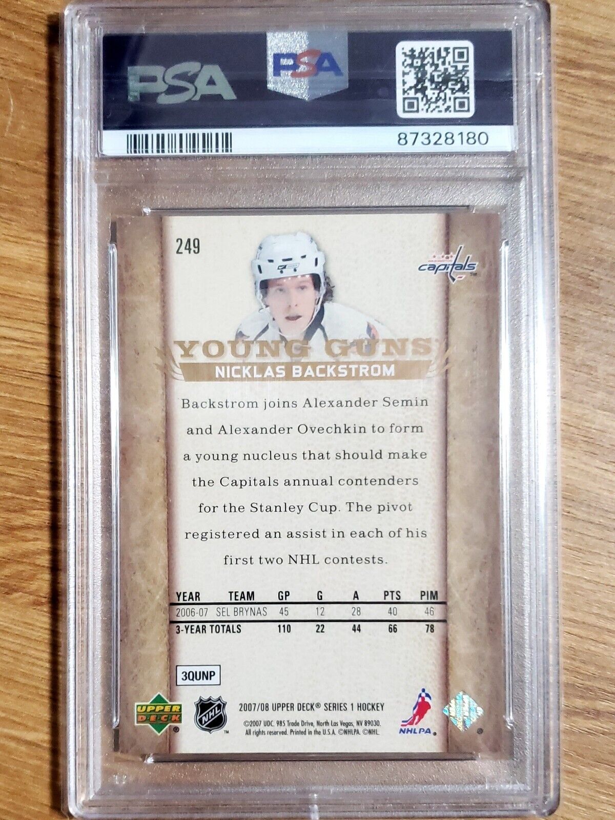 Nicklas Backstrom 2007-08 Upper Deck Young Guns Rookie Graded PSA 9 Mint! #249