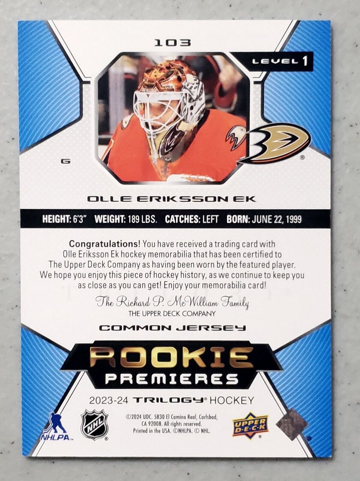 Olle Eriksson 2023-24 Trilogy Rookie Premieres Jersey /499 #103 - Image 2