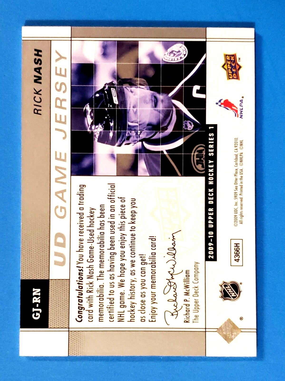 Rick Nash 2009-10 Upper Deck UD Game Jersey #GJ-RN