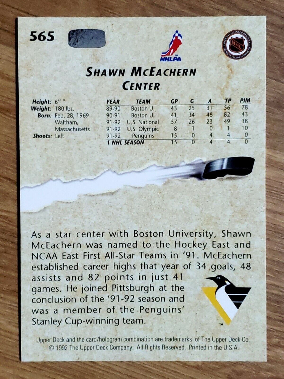 Home→Shawn McEachern 1992-93 Upper Deck Young Guns Rookie Card #565