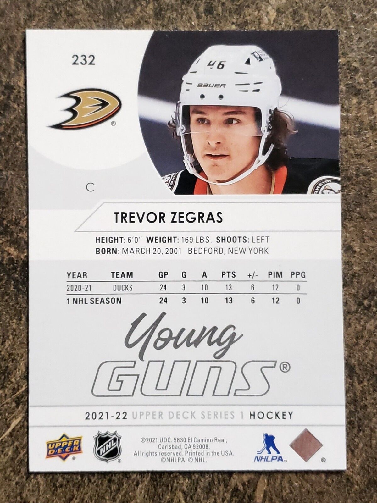 Trevor Zegras 2021-22 Upper Deck Young Guns Rookie Card #232
